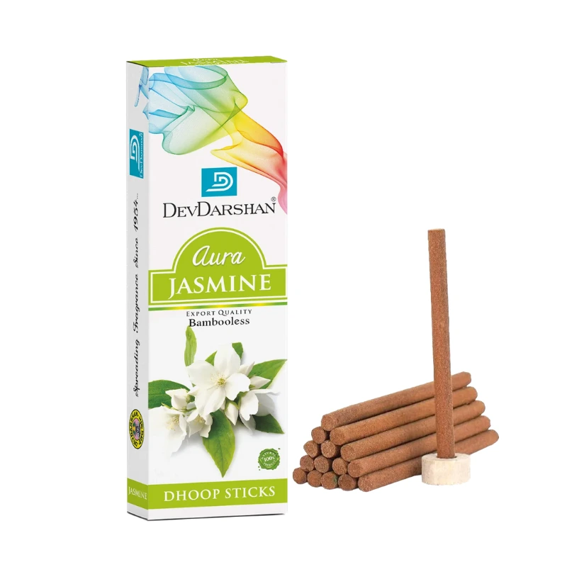Crafted in a bambooless design, they deliver a smooth, clean burn without any harsh smoke, allowing the true essence of jasmine to shine through. Known for its calming properties, jasmine fragrance helps reduce stress, clear the mind, and improve concentration. Whether you are engaging in spiritual practices, welcoming guests, or simply relaxing after a long day, Aura Jasmine Dhoop Sticks add a divine touch to every moment.