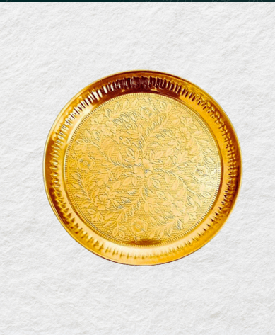 The Pure Pital Pooja Thali 7 Inch is decorated with elegant floral engravings, making it both functional and decorative. Whether it is for daily offerings, aarti, or festive poojas like Diwali, Navratri, and Janmashtami, this thali is the perfect companion for your devotion.